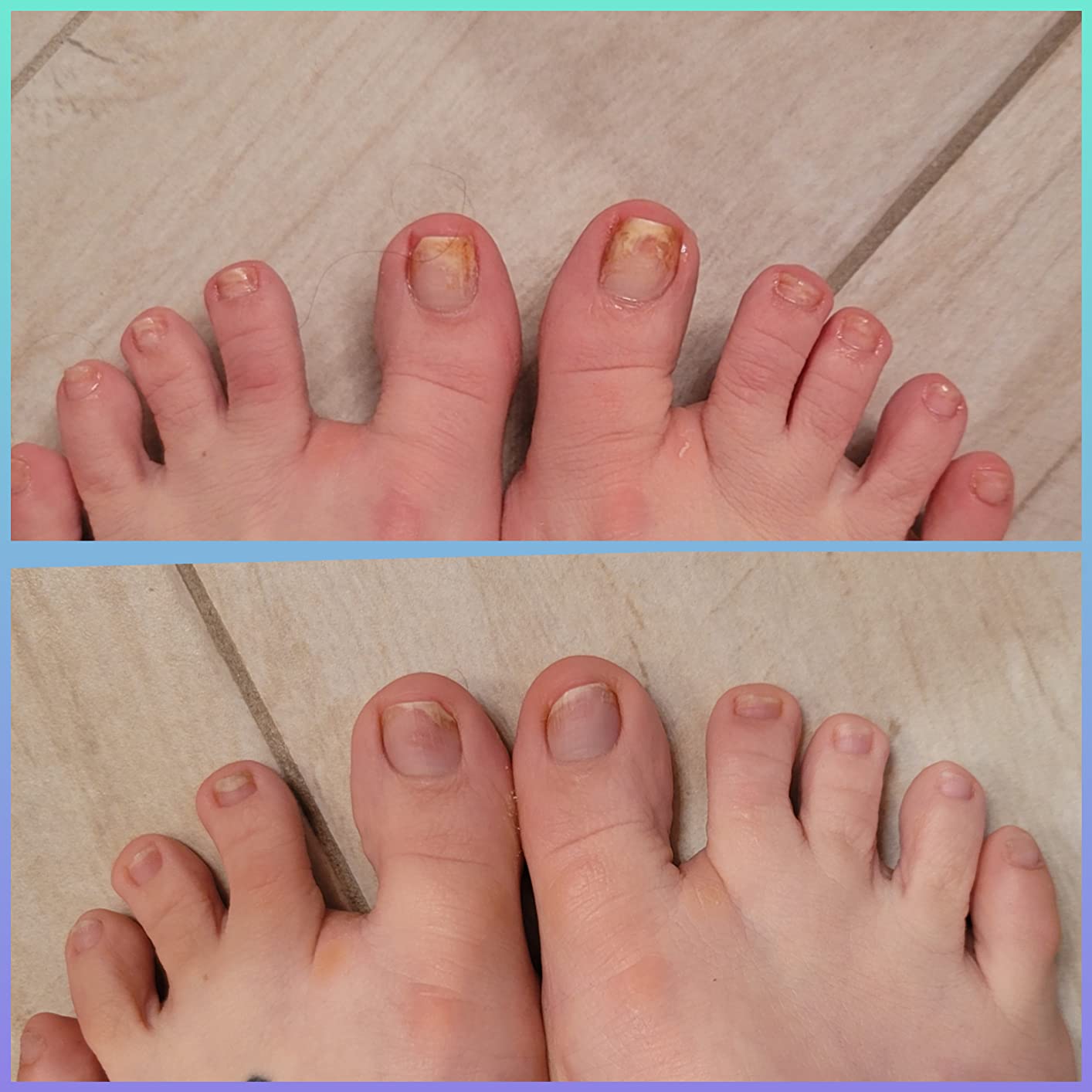 Al aplicarlos juntos según las indicaciones, penetran profundamente en la piel y las uñas, creando un ambiente desfavorable para la proliferación de hongos y bacterias, e hidratando en profundidad, reparando grietas y devolviendo suavidad y vitalidad sin efectos secundarios.